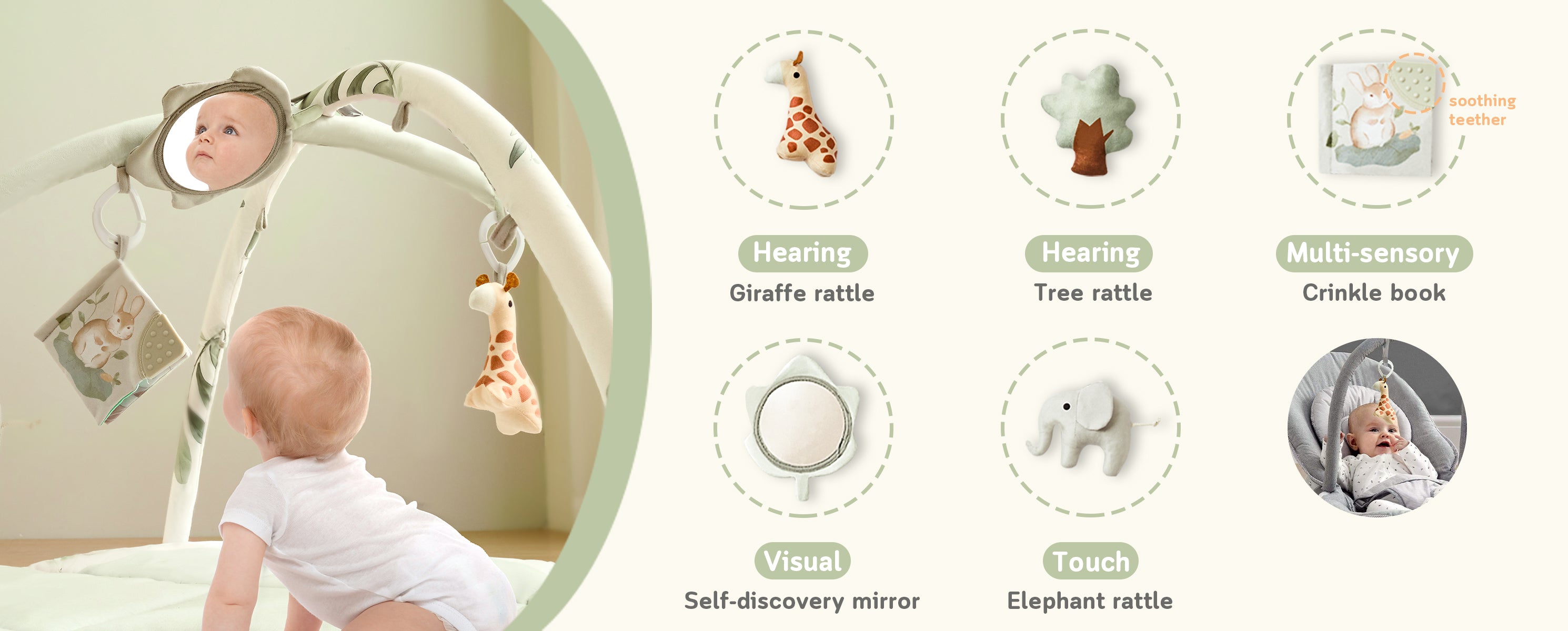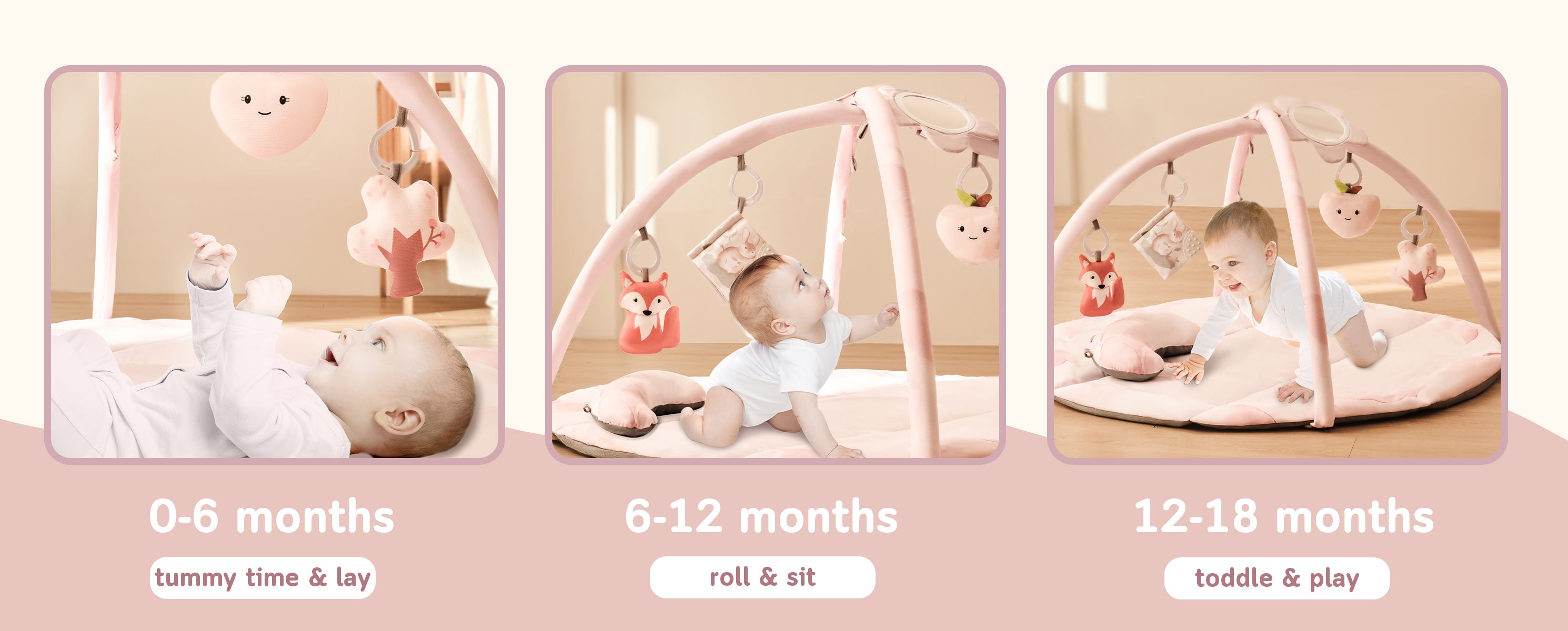 The playmat can be removed and used separately as a milestone picture mat, a thick sitting mat, or a large everyday mat.