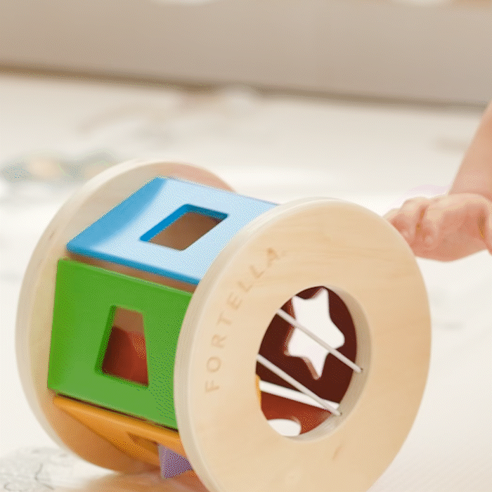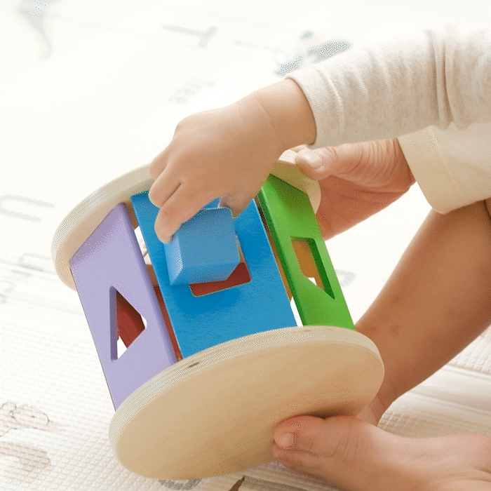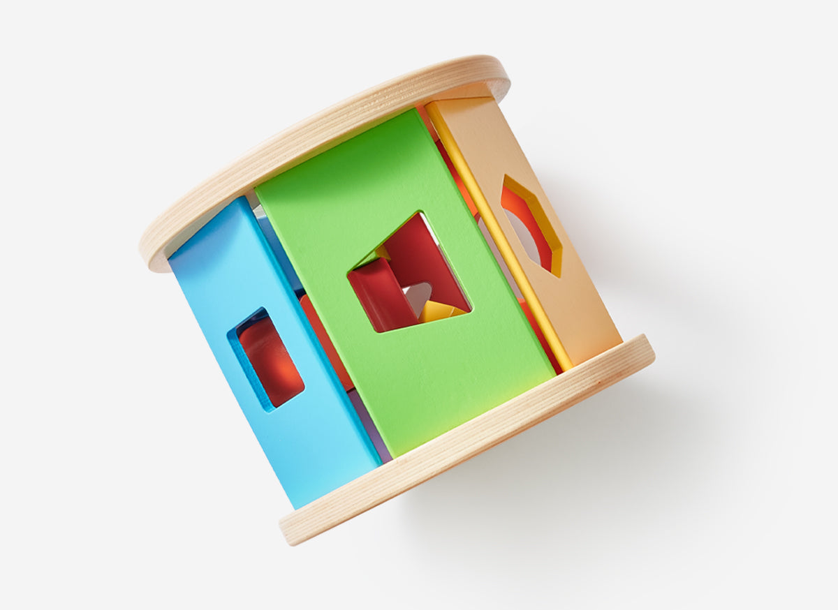 Promote crawling by rolling the drum across the floor, and it doubles as a shape sorter—a more challenging activity recommended after 16 months.